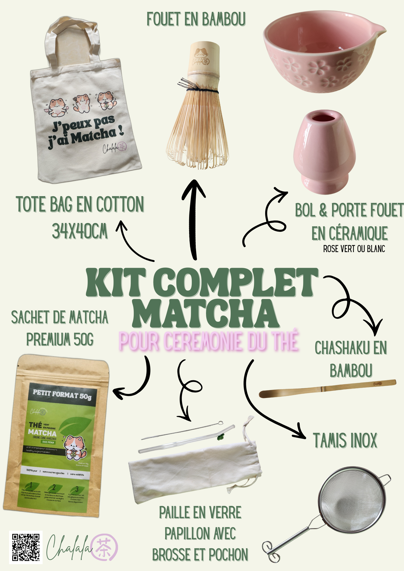 - 1 sachet thé Chalala matcha prémium 50g